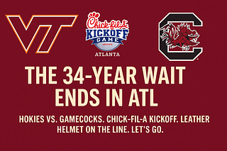 Hokies vs. Gamecocks. Chick-fil-A Kickoff. Leather helmet on the line. Let’s go.